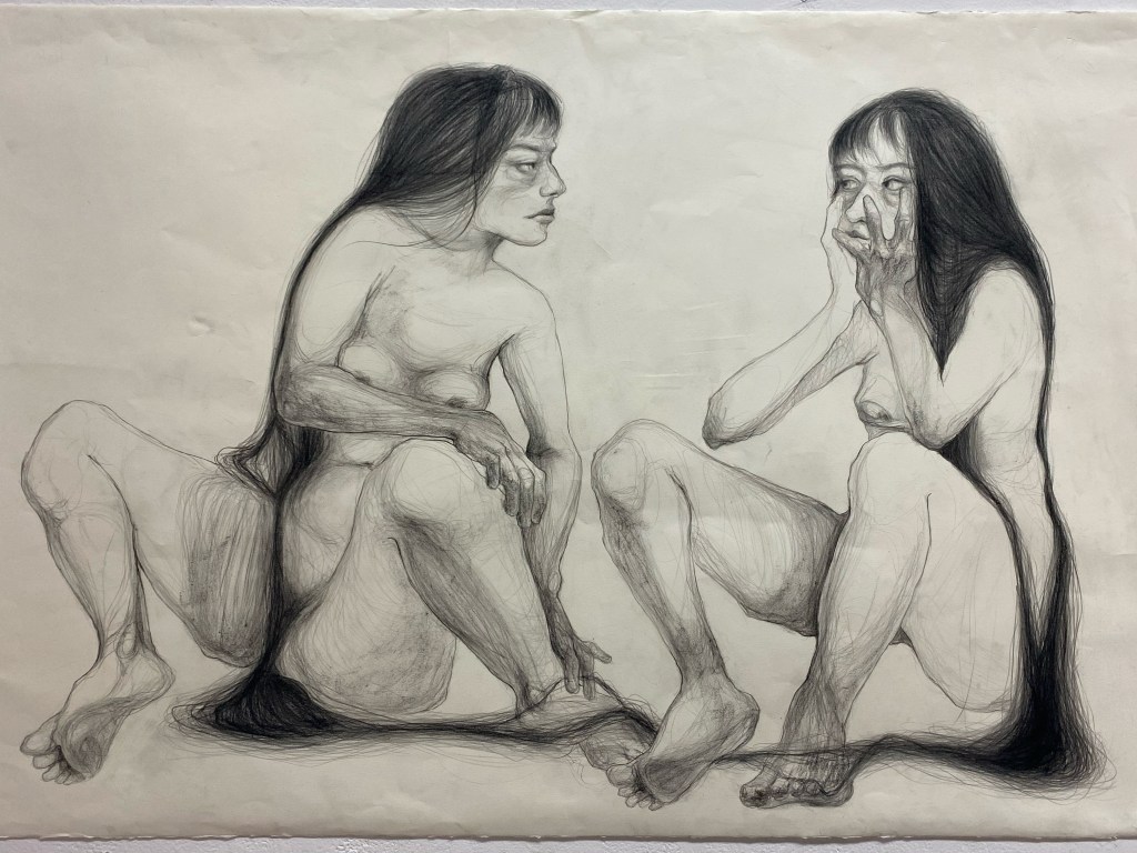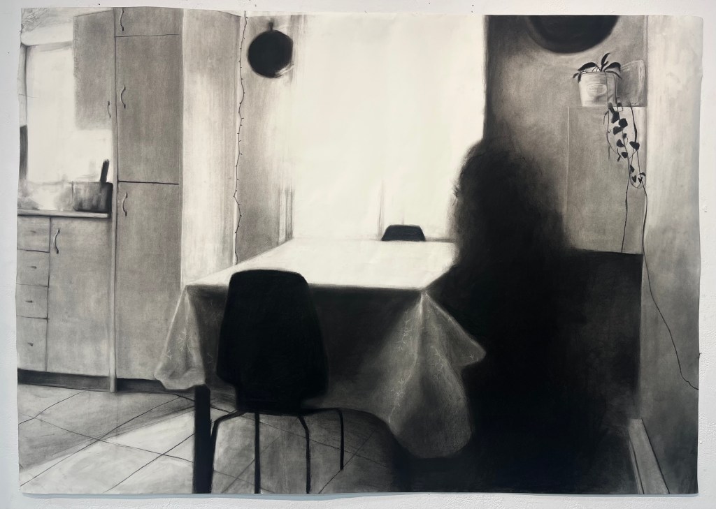 Inspired by the works of Claire Weissman Wilks, 2023. Charcoal on paper.